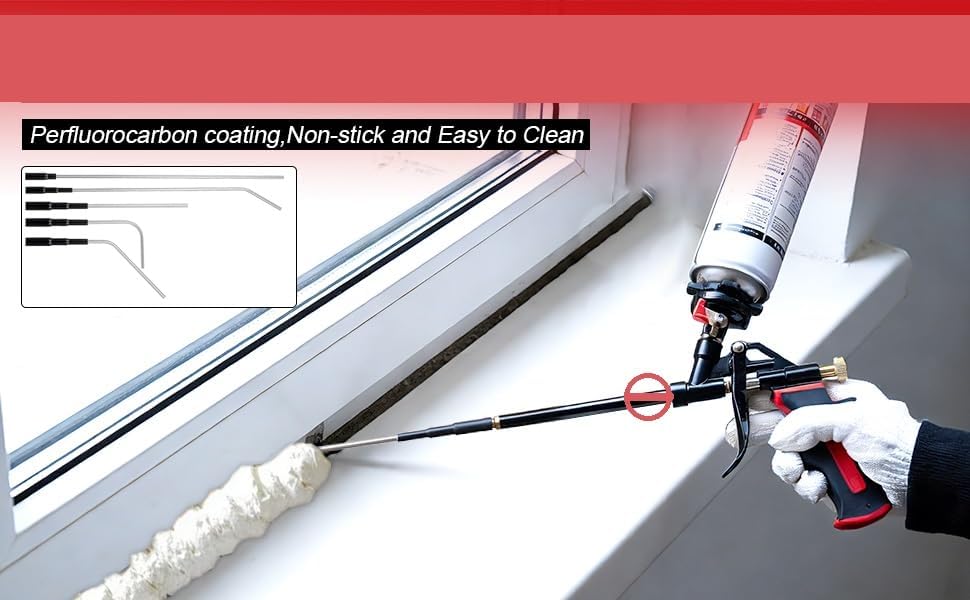 • EXTENDED REACH: 6.8-inch nozzle extensions provide superior access to deep cavities, corners, and overhead spaces for precise foam dispensing