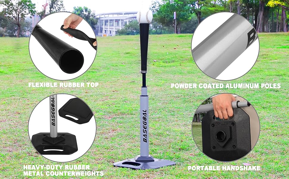 【Flexible Rubber Top】Baseball batting tee comes with a Rolled Flexible Rubber Top, which is flexible and durable enough to withstand multiple hard hits and is replaceable.