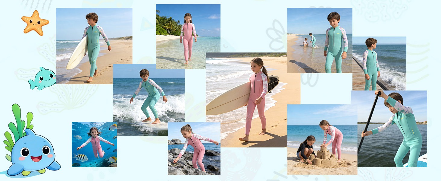Wetsuit for Many Water Sports More than a basic diving suit—it's a versatile companion for swimming, surfing, snorkeling, kayaking, and paddleboarding (family outings). It adapts to different water scenarios, keeping kids warm, protected, and comfortable in each.