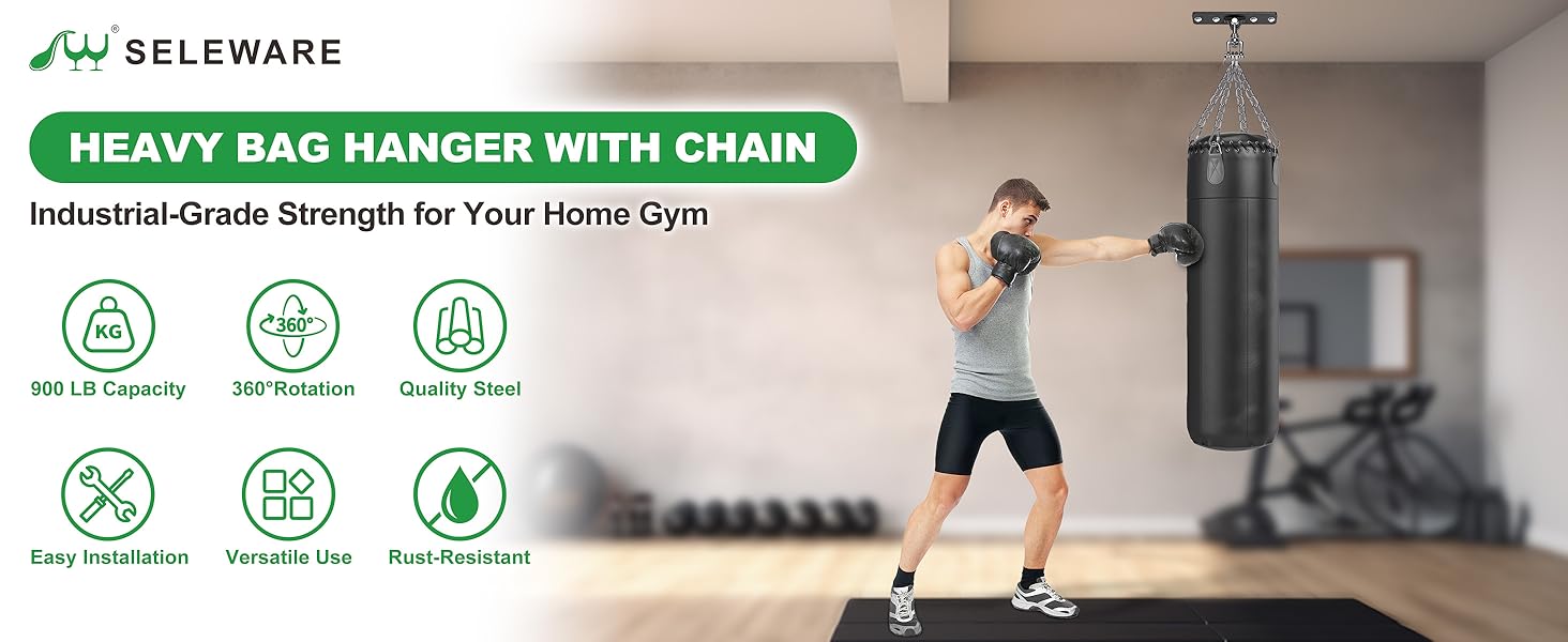 SELEWARE 360° Rotation Heavy Bag Hanger, 1000LB Capacity Punching Bag Ceiling & Beam Mount with Stainless Steel Chain & Snap Hooks for Boxing, MMA, Muay Thai, Home Gym
