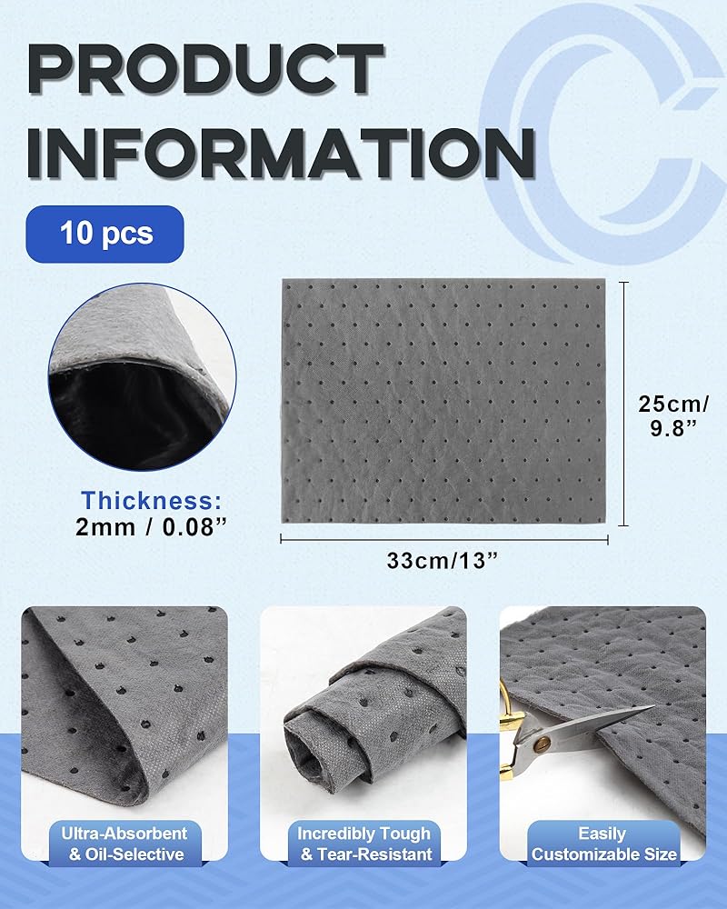 10x Absorbency & Durable: Made from thick polypropylene, absorbs up to 10 times its own weight. No lint, no tearing