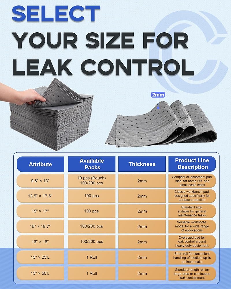 Cut Any Size & Reuse: Cover large spills by using multiple pads, or cut solid sheets with scissors to fit tight spaces. Wash and reuse for extra savings