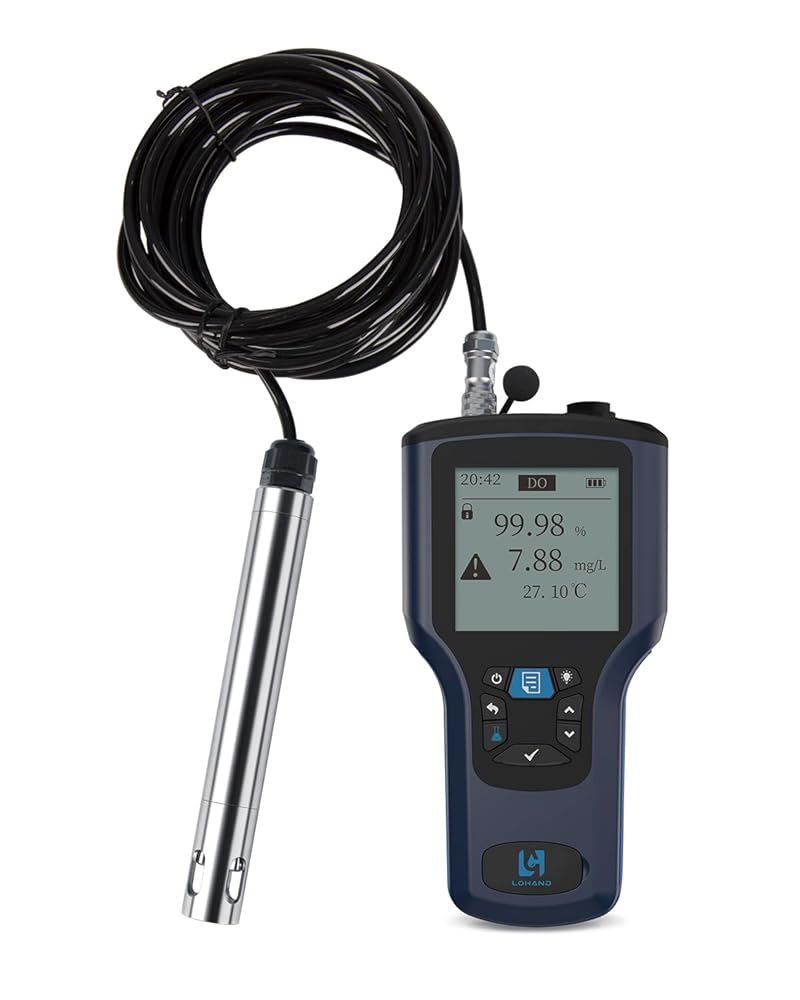 LOHAND Portable Fluorescent Dissolved Oxygen Meter, 0.01mg/L High Precision, Professional Digital Dissolved Oxygen Tester for Aquaculture/Wastewater Treatment, Range:0-20mg/L