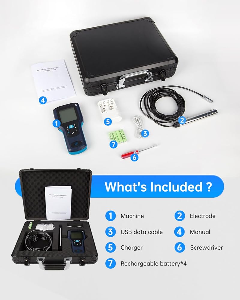 Accurate and Reliable: Equipped with a built-in high-precision temperature sensor, it features automatic pressure and temperature compensation. Eliminating environmental interference. Ensuring you obtain accurate and stable dissolved oxygen levels anywhere.