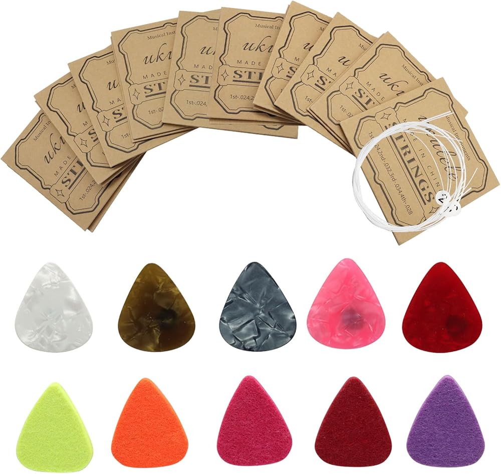 • Comprehensive Ukulele Strings Kit: This ukulele strings set includes 5 sets of strings (4 strings per set, totaling 20 strings) .