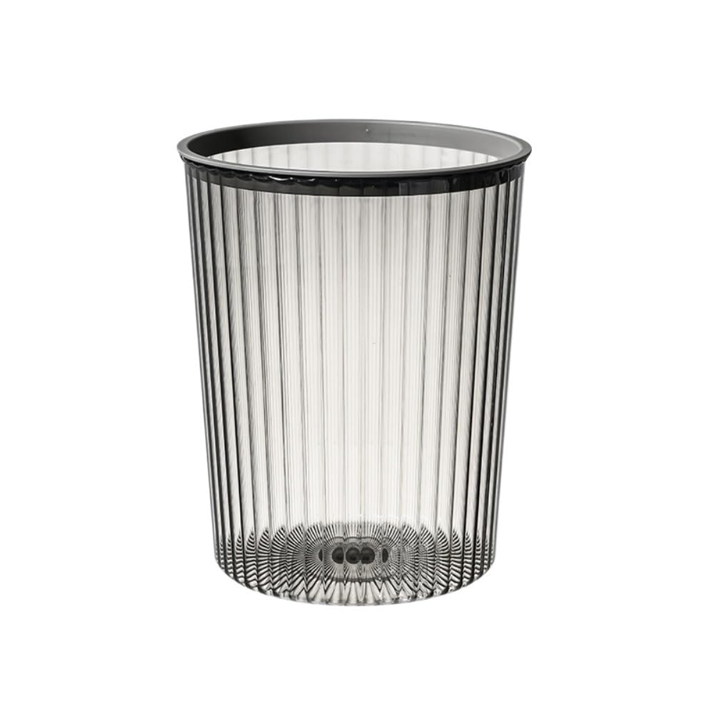 The transparent bucket body allows you to directly see the garbage capacity and replace the garbage bag in time; the metal press-ring firmly fixes the garbage bag to prevent slipping and shifting; the vertical texture increases friction, preventing the bucket from sliding; the smooth surface is easy to clean, with water stains and fingerprints wiped off immediately; the no-lid design allows more convenient garbage disposal, suitable for high-frequency garbage throwing scenarios such as living rooms and bathrooms; the waist-shaped design saves space, fitting corner placement.