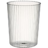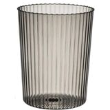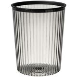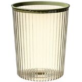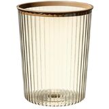 The bucket body is made of high-transparency PET or acrylic material, with a vertical texture surface that is delicate to the touch, scratch-resistant and wear-resistant, combining transparency and anti-slip properties; the press-ring is made of metal texture material (black/gold), stable and durable, not easy to fade; the edges are rounded to avoid bumps and injuries; the overall material is environmentally friendly and odor-free, and the transparent + metal combination matches soft decoration styles with rich visual layers.