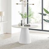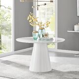 Transform your dining space with the Palma Round White High Gloss 4-6 Seater Dining Table. This stunning piece features a large statement tapered central pillar that creates a minimalist post-modern aesthetic. The perfect balance of round and straight lines offers an uncluttered and elegant dining solution that becomes a conversation piece in any modern home. The white high-gloss finish maintains a bright, airy appearance while making a subtle statement. Pair with bold colored chairs or metallic accessories to make this table pop, or keep it chic with understated tones. Comfortably seating 4-6 people, this table is constructed from engineered wood with a luxury high gloss finish that's easy to clean and durable. With dimensions of 120cm width, 120cm depth, and 76cm height, this table provides ample dining space while maintaining a sophisticated profile. The Palma table combines practicality with contemporary design for years of enjoyment.