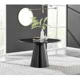 MODERN DESIGN: Round dining table with a large statement tapered central pillar, creating a minimalist post-modern aesthetic perfect for contemporary dining spaces.