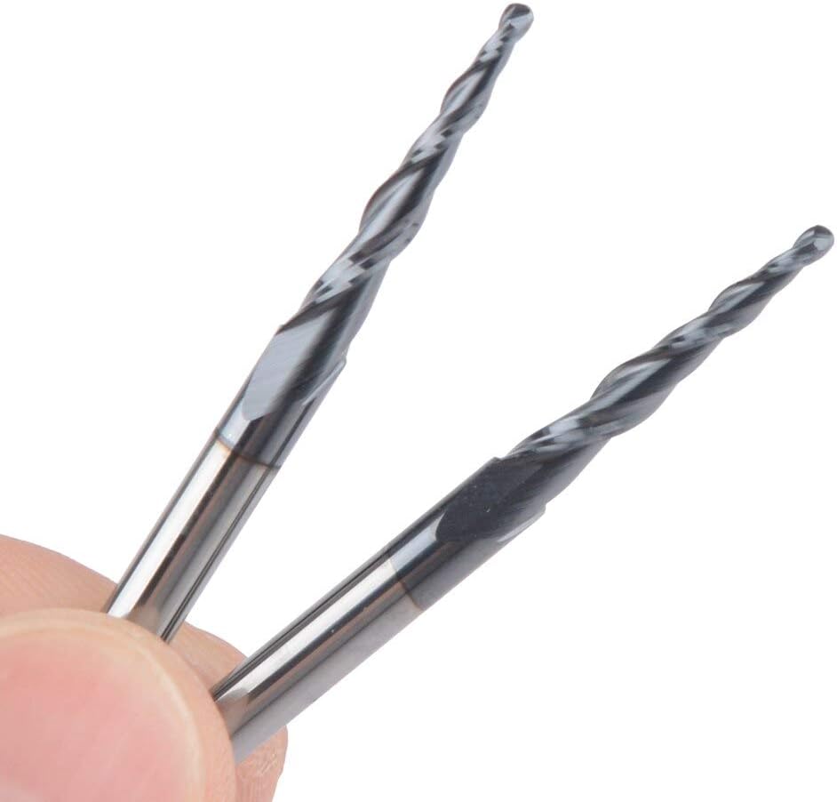 10pcs Ball Nose Tapered End Mill R0.75D420.550L2F HRC55 Tungsten Solid Carbide Taper Ball Nose End Mill Milling Cutter CNC Router Bit