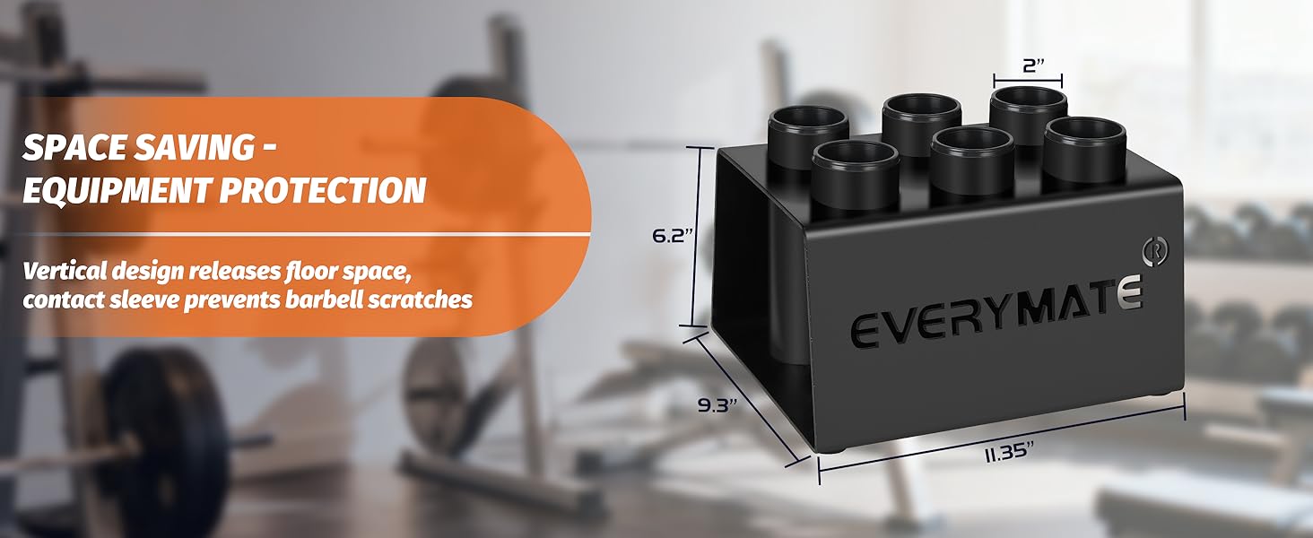Heavy-Duty Steel Build for Long-Lasting Performance: Crafted from thick welded steel with a scratch-resistant black powder-coated finish, this barbell rack boasts a rugged construction to withstand daily wear from intense weightlifting sessions.Compact at 11.35” x 9.3” x 6.2”, providing a reliable storage spot for years.