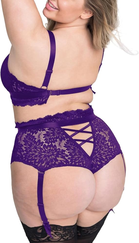 💗Romantic Beauty: This plus size lingerie set exudes femininity with its classic black and red color scheme, complete with a lace criss-cross bra and a sexy high-waisted suspender thong. Wide suspender straps are detachable for a versatile look, and delicate lace and ribbon details provide a luxurious, flirty finish.