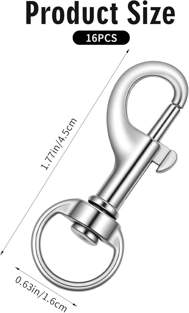 【16 PCS】You will receive a total of 16 silver snap hooks, providing ample quantity for multiple projects or replacements. Each clip measures 4.5x1.6cm / 1.77x0.63in, offering a substantial size for a secure grip and robust performance. Made from zinc alloy and finished in a silver color, this set represents a high-value package, ensuring you have a reliable hardware component on hand whenever the need arises.
