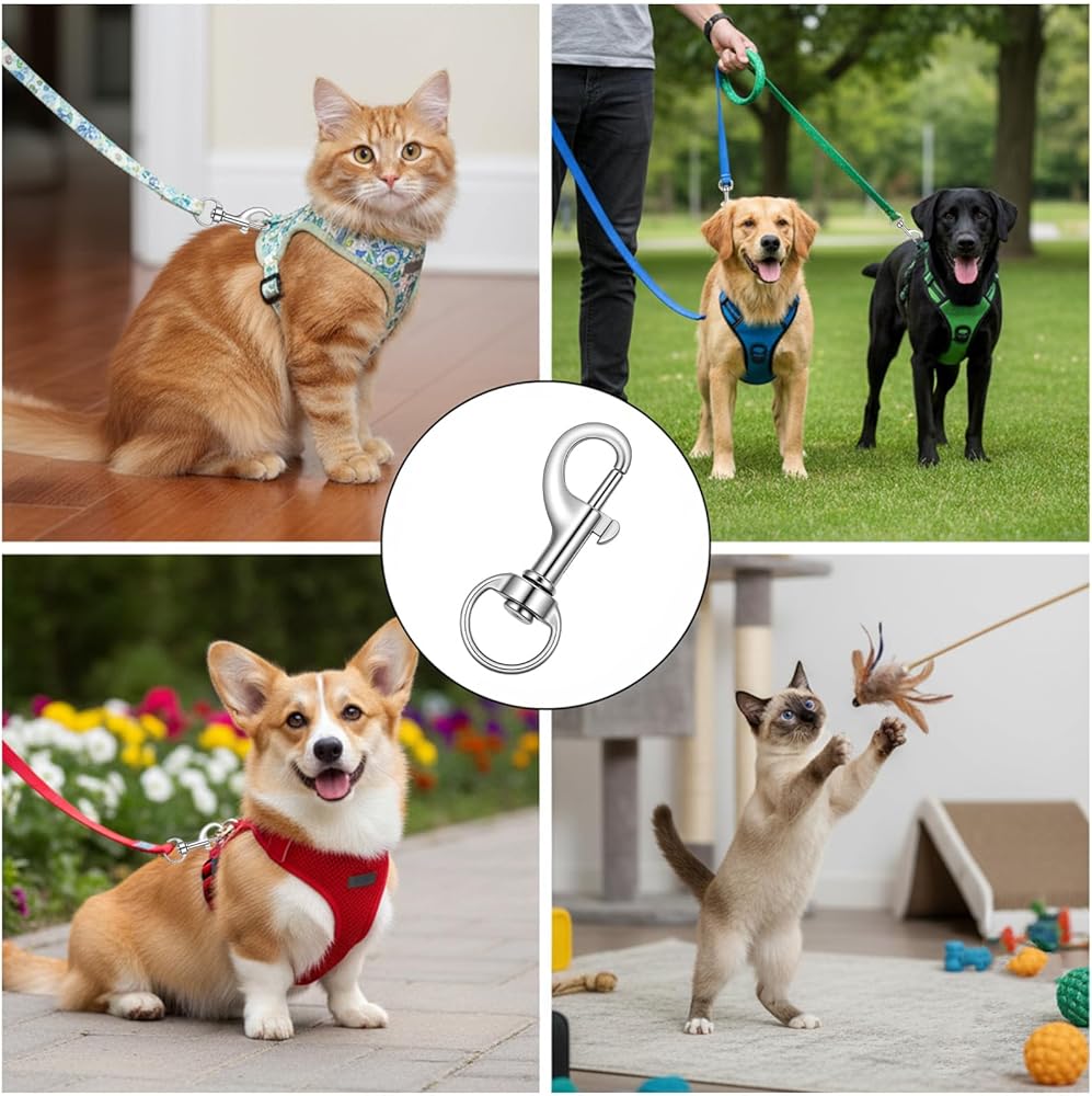 【Versatile Application】The practical design of these single-ended clips makes them suitable for a wide array of indoor and outdoor applications. They are perfectly suited for creating or repairing pet leashes and collars, attaching flags to flagpoles, and securing tarps or clotheslines. Beyond these, their utility extends to organizing key chains, managing cables, or even as hardware for DIY crafts and bag straps, offering a simple solution for various connecting needs.