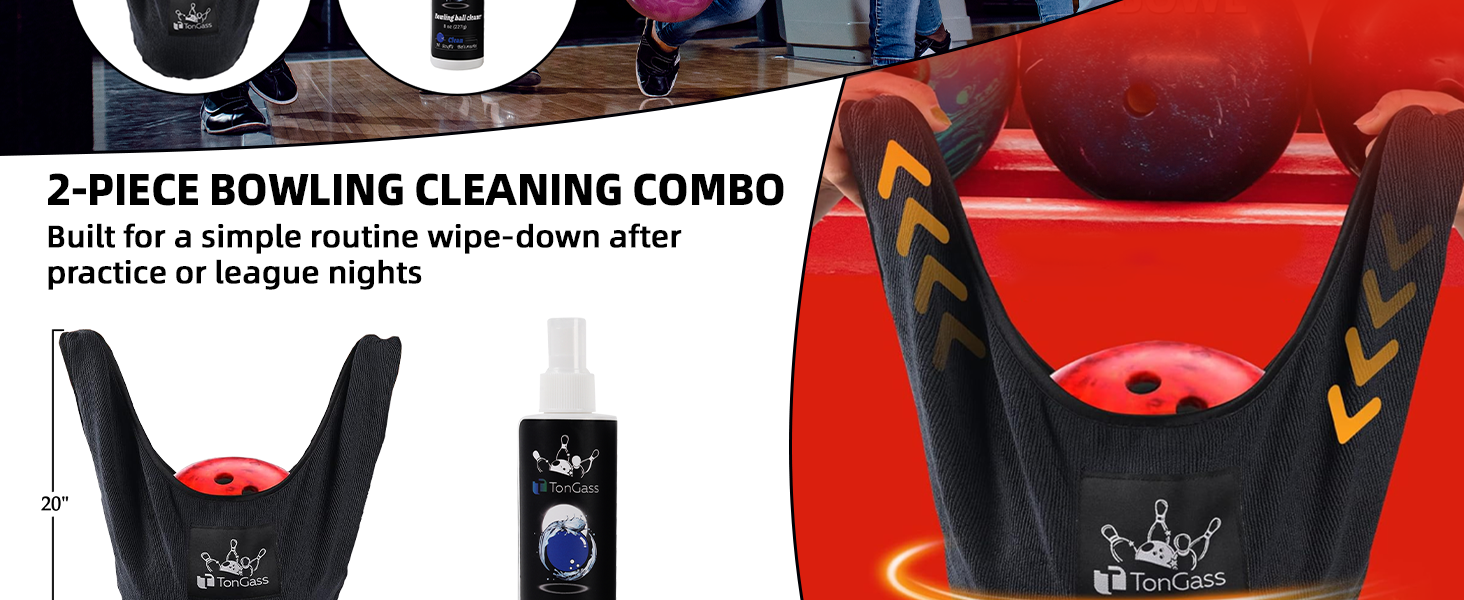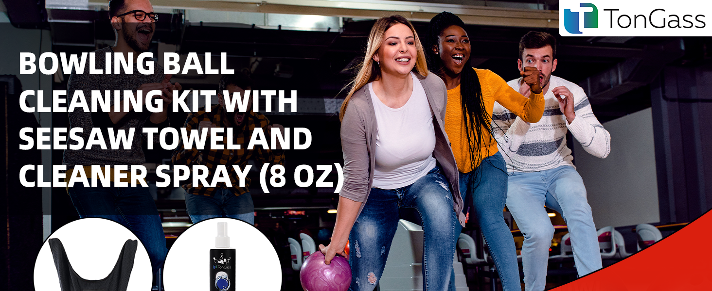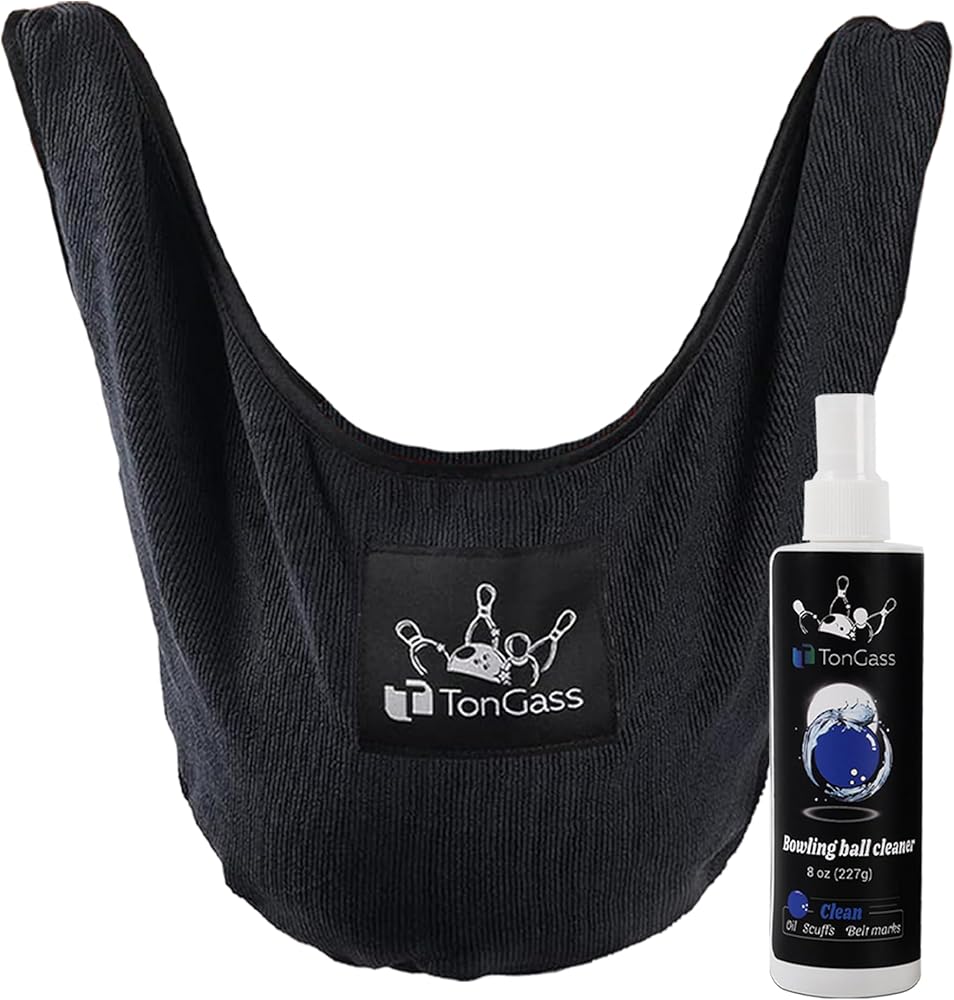 TonGass Bowling Ball Cleaning Kit with Seesaw Towel and Cleaner Spray (8 oz), Microfiber Bowling Ball Polisher Bag for Quick Wipe-Downs, Portable Bowlings Accessories for Practice and League Play