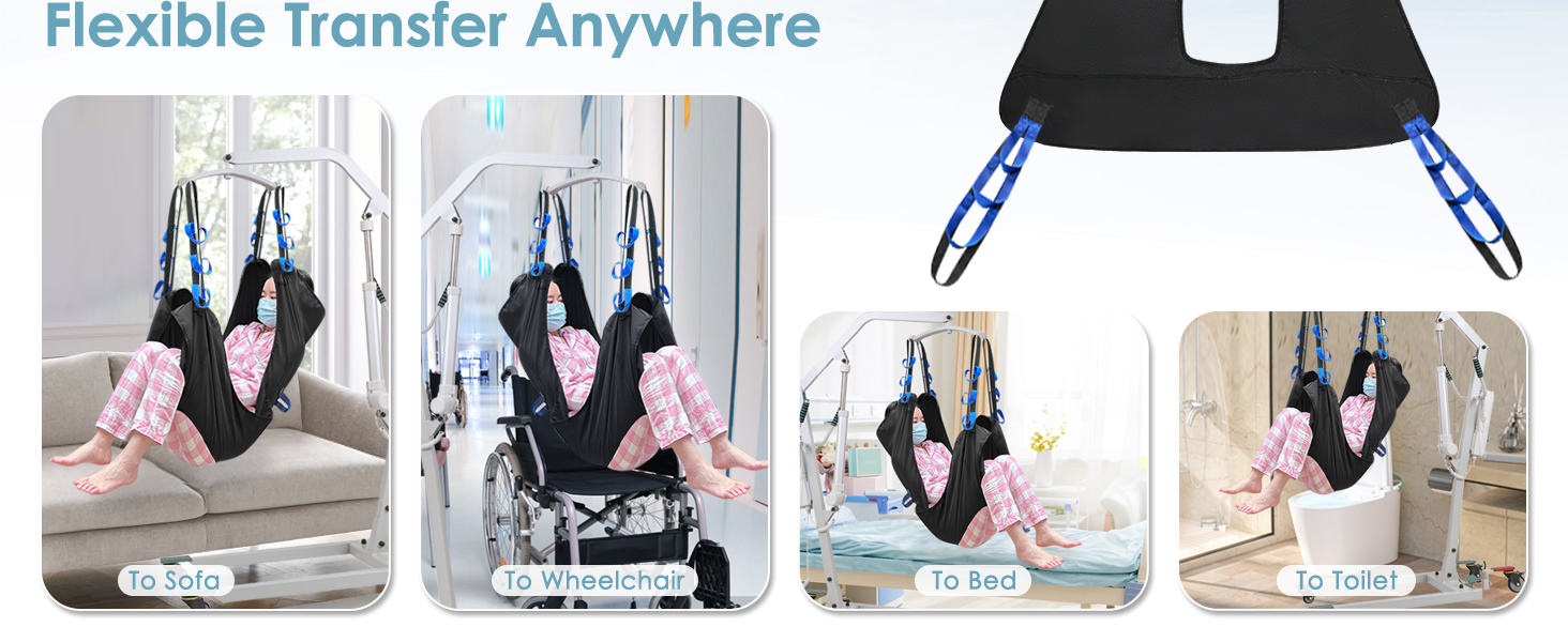 【Universal Compatibility】Full body elevation lifter suitable for Wheelchair Users, Bariatric Patient, Bedridden patients, Disabled, Handicap, Lower limb fracture patients, Seniors with poor ability to walk and ect. Compatible fit most other patient lift brands with 4 hooks.