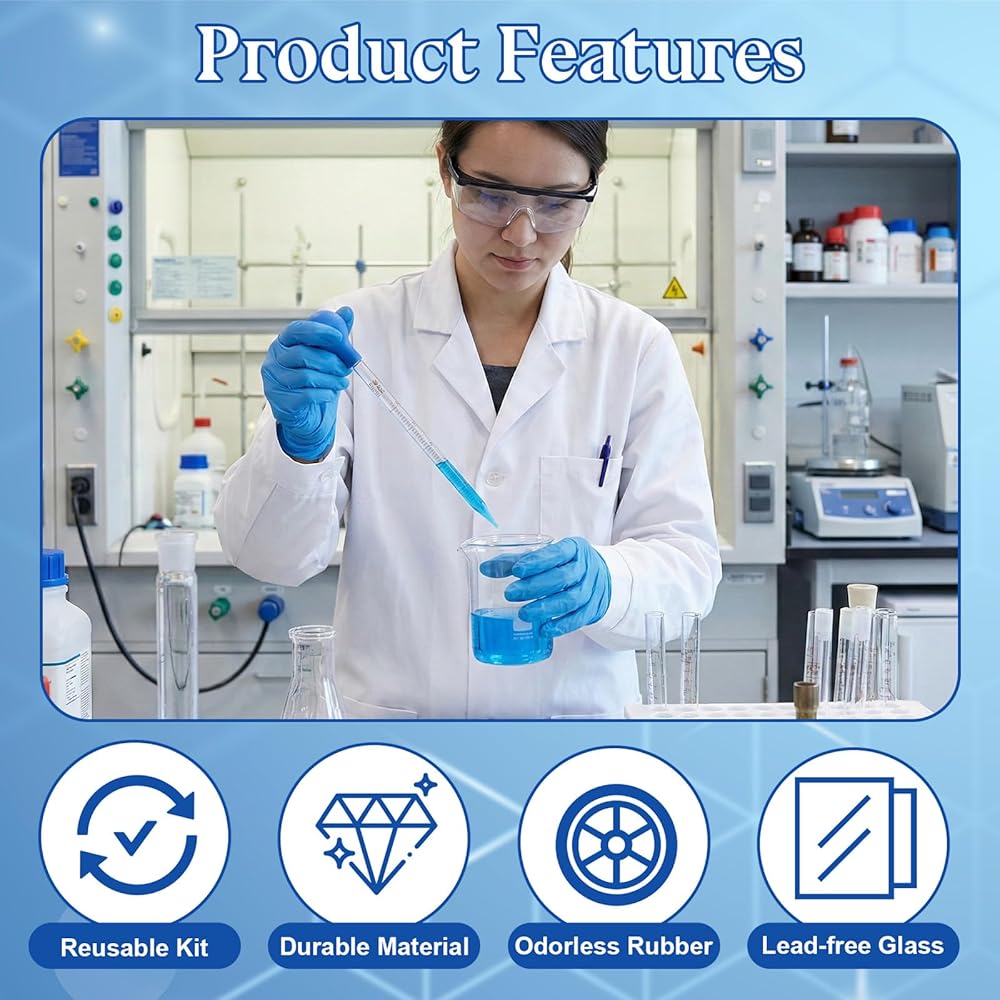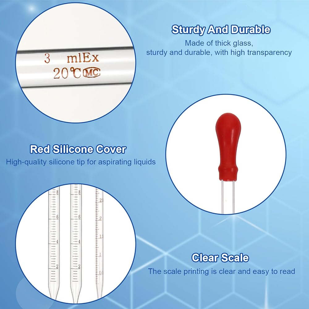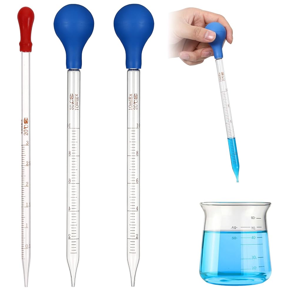 Glass Pipette Precision - Our calibrated glass dropper features clear ml markings for exact liquid measurement from 1 to 10 ml; soft rubber bulb ensures strong suction and drip-free transfer