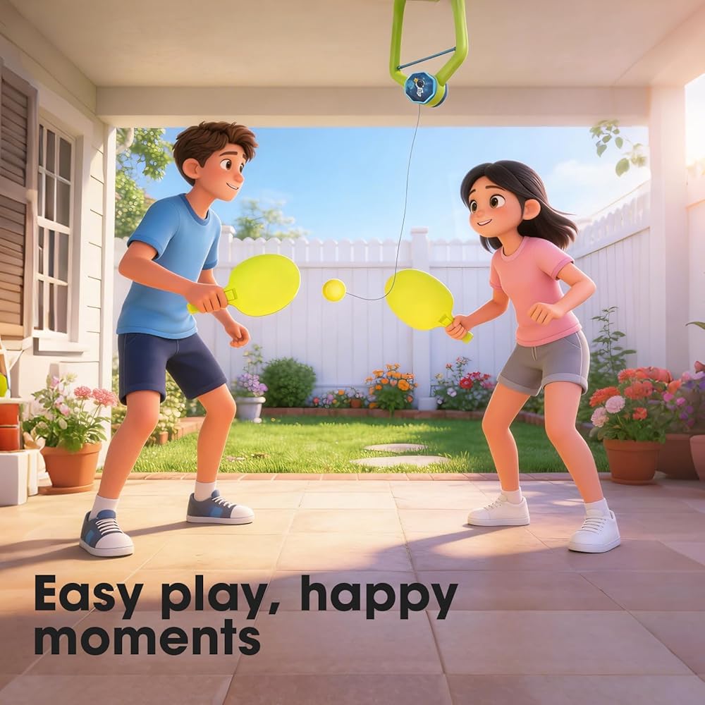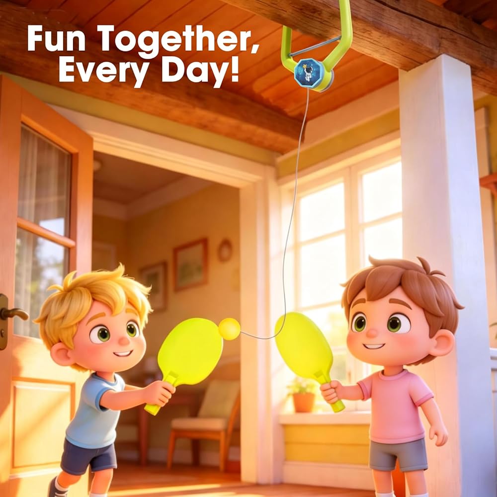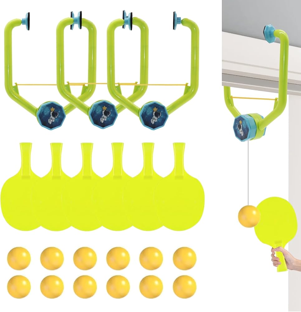 This 3-set indoor hanging table tennis training kit is designed for fun, practice, and skill improvement. Each set includes 2 paddles and 4 ping pong balls, making it perfect for solo or group training. Made from durable PVC material, it is safe and reliable for all ages. Its hanging design allows easy installation on door frames or suitable spots, and the adjustable length ensures versatile use. Compact and portable, you can practice anywhere without the need for a table. Ideal for improving reaction speed, hand-eye coordination, and helping children develop table tennis skills. A perfect gift for friends and family who enjoy sports.