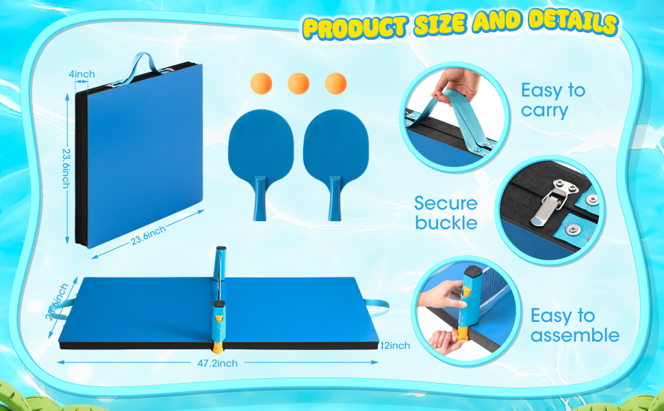 Quick and Easy Setup: our summer swimming pool table tennis table can be folded design allows fast settings to ensure that your precious swimming pool time is spent on entertainment instead of installation; There is a built -in compartment at the bottom of the table, which can be convenient to store game components, while the external equipped with a handle and lock, making it easy to carry at any time