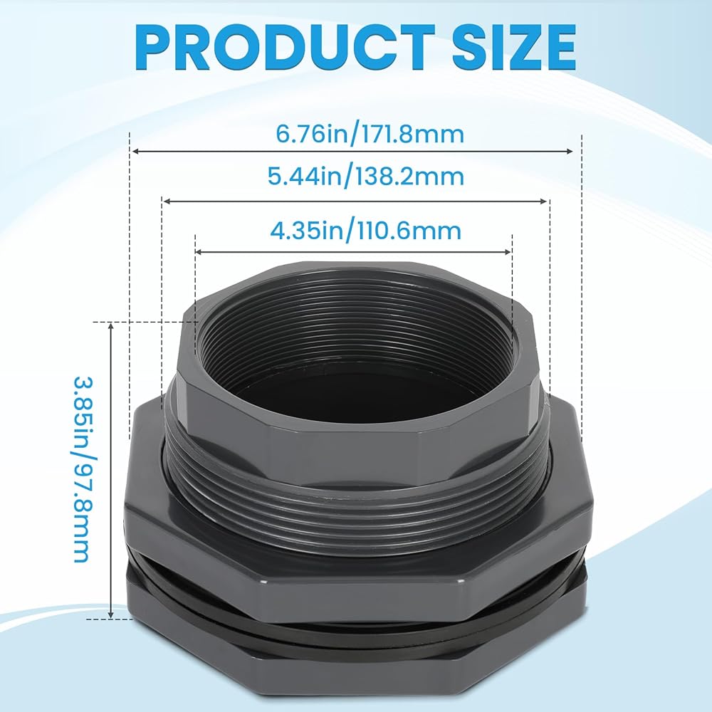 Trusted Quality & Prompt Service – Every 4 inch bulkhead fitting undergoes strict quality inspection before shipping. Should you encounter any issues with this PVC pipe fitting, reach out to us directly. Our team will respond within 12 hours and work diligently to resolve your problem to your satisfaction