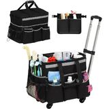Rolling Cleaning Caddy, Cleaning Supplies Organizer with Cleaning Caddy Apron, Large Cleaning Caddy Bag with Detachable Trolley, Handles and Shoulder Strap for Cleaners Housekeepers, Black