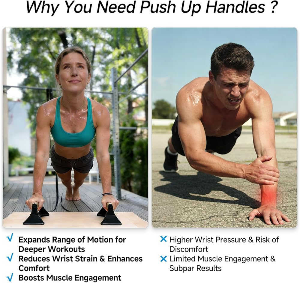 【Enhanced Range of Motion】 Targeted Upper Body Training! These push up board lift your body higher than floor push-ups, extending your movement amplitude to activate more chest, shoulder, and tricep muscles. Whether you're a beginner or pro, the calisthenics bars boost your push-up effect, helping build strength faster