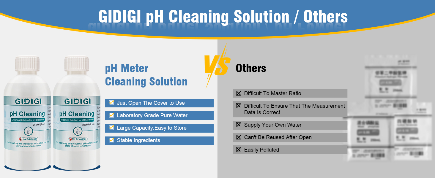 pH Cleaning Solution: Clean the liquid connector of the electrode once after each use to prevent blockage and maintain your pH meter accuracy.Suitable for GIDIGI pH meter and other any pH meter.