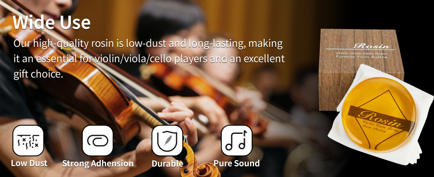 【Natural Rosin】Crafted from rosin violin using a specialized process. This premium formula delivers a superior bow grip and projects a rich, clear, and resonant tone, offering exceptional value for students and professionals alike