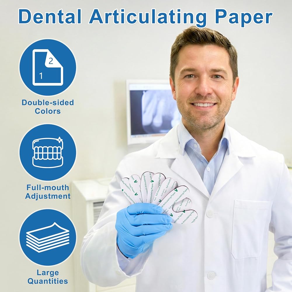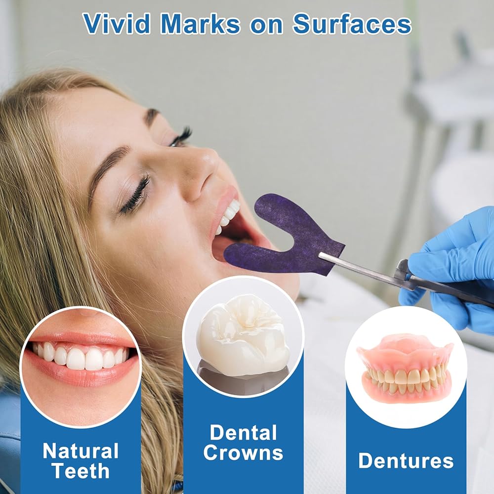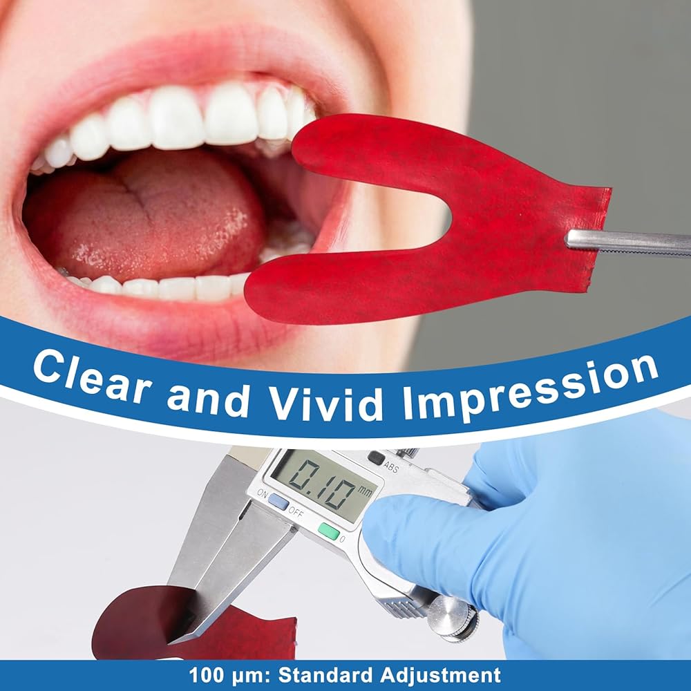 Clear & Long-lasting: The tear-resistant 100 μm dental marking paper delivers crisp impressions for full-mouth occlusal adjustments. Dual-color design facilitates upper-lower jaw comparison