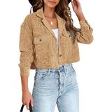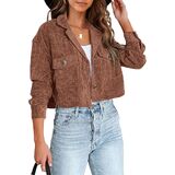 FEATURES: S=US 4-6, M=US 8-10, L=US 12-14, XL=US 16-18, XXL=US 20 / Women's Casual Jackets / Long Sleeve Crop Jackets / Corduroy Shacket Jackets / Sleeves With Button Cuffs / Lapel Collar / Button Down / Two Flap Pockets / Short Length / Fall Jackets For Women / Women's Winter Coats