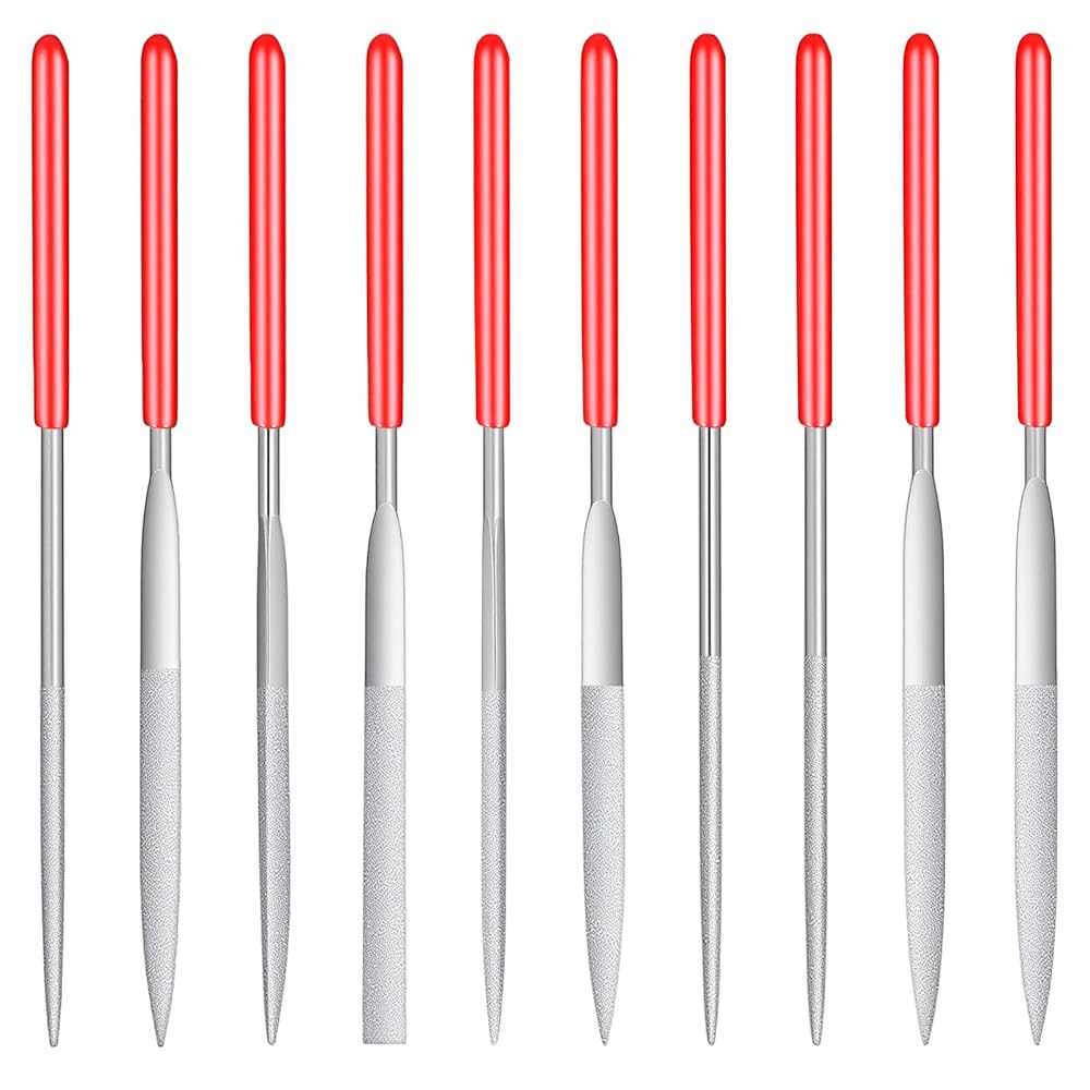 10 Pcs Mini Steel Needle File, Multi-styles Diamond File Portable Round, Flat and Triangular Model Files Tool for Making Carving Jewelry Wood Glass Stone DIY Handmade Crafts, Red