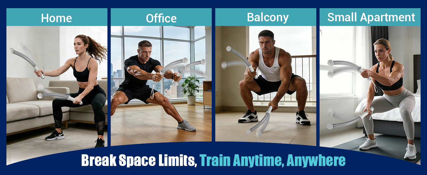 [Ropeless Battle Ropes for Home & Apartment Workouts] Designed for modern home fitness, these ropeless battle ropes use a ropeless resistance system to simulate traditional battle rope movements without long ropes or anchor points. Safer for indoor use than standard battle ropes ropeless designs, these portable ropeless battle ropes feature quiet silicone end caps to reduce noise and floor impact, making them ideal cordless battle ropes for home gym, apartments, and small spaces