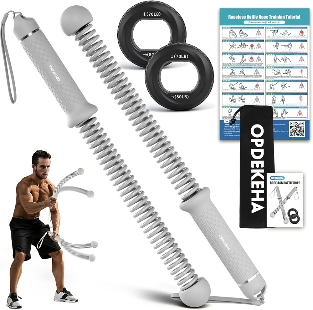 [Weighted Spring Resistance for Smooth & Consistent Training] These weighted ropeless battle ropes are built with a reinforced spring coil structure that delivers smooth, continuous resistance and stable rebound on every swing. The internal system allows ropeless battle rope springs to handle repeated high-frequency use while maintaining feedback consistency. Whether for strength or cardio sessions, these cordless battle ropes support effective training at home or outdoors