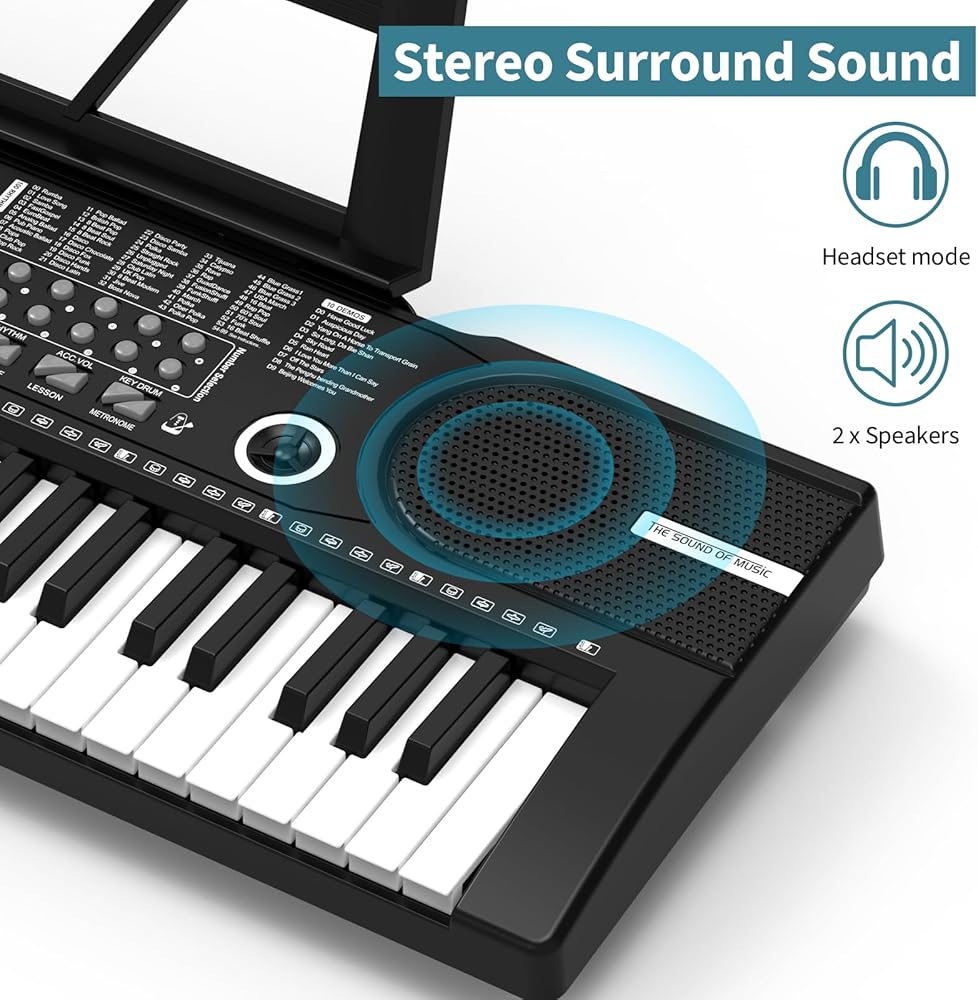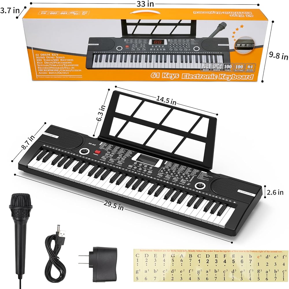 • ♫【Multifunctional 61 key piano】The electric keyboard piano is equipped with 61 keys, a variety of instrument sounds and a variety of drum percussion accompaniment, 6 demonstration songs, 16 instrument tones, electric piano can play multiple notes of chords, different intelligent keys can achieve delay, vibrato, recording, programming and more functions.