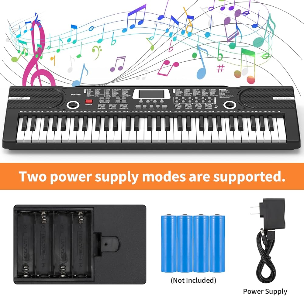 • ♫【2 Power Supply Methods】The portable keyboard piano can be powered by a standard power adapter or 1.5V AA batteries (not included), so in addition to using it at home it can also be taken on the go and played outdoors.