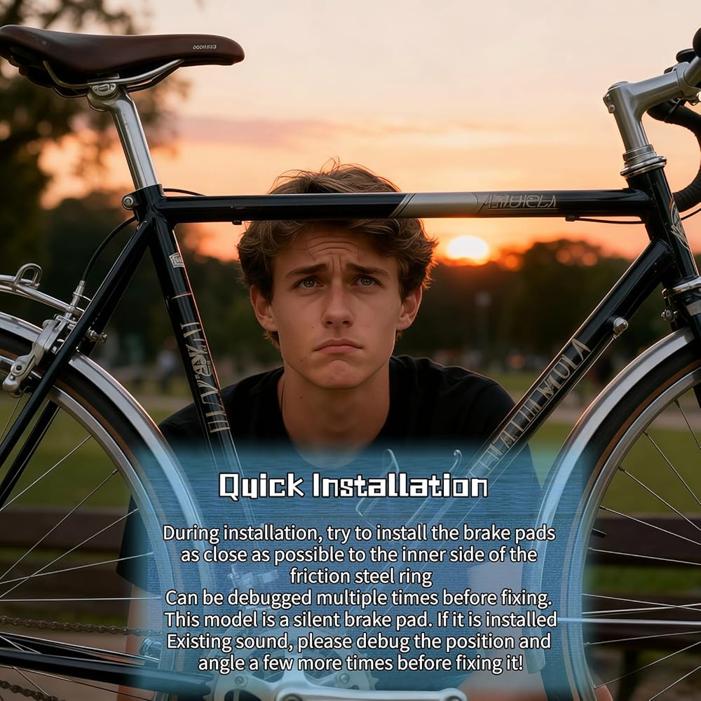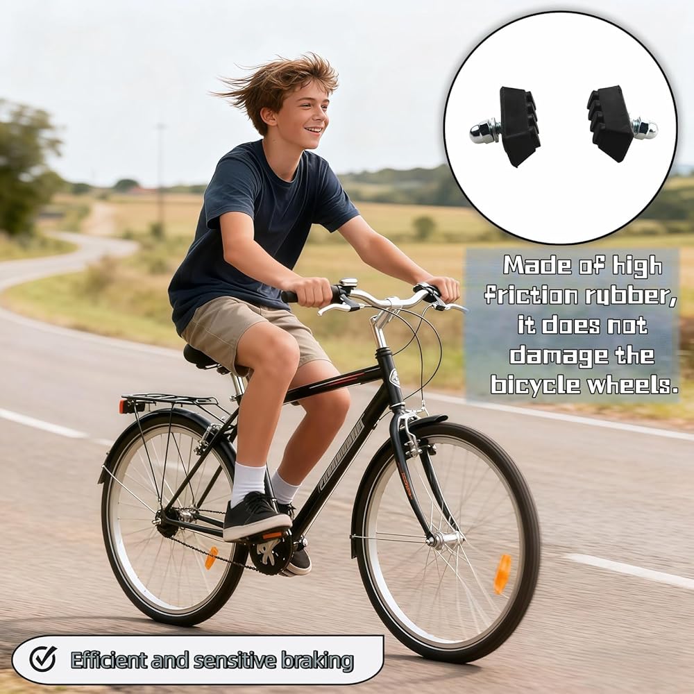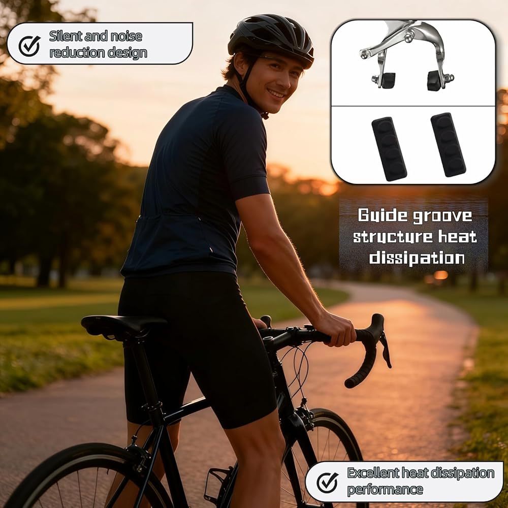 【Rim-Friendly & Fatigue-Reducing Design】 The specialized rubber compound protects your rims from wear while the built-in metal skeleton enhances structural integrity. Requires less hand pressure on brake levers, effectively reducing muscle fatigue during long descents or extended rides.