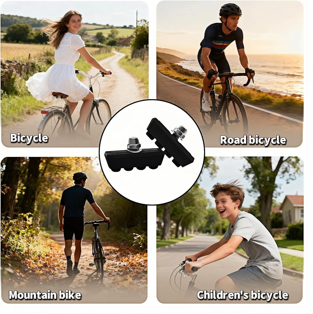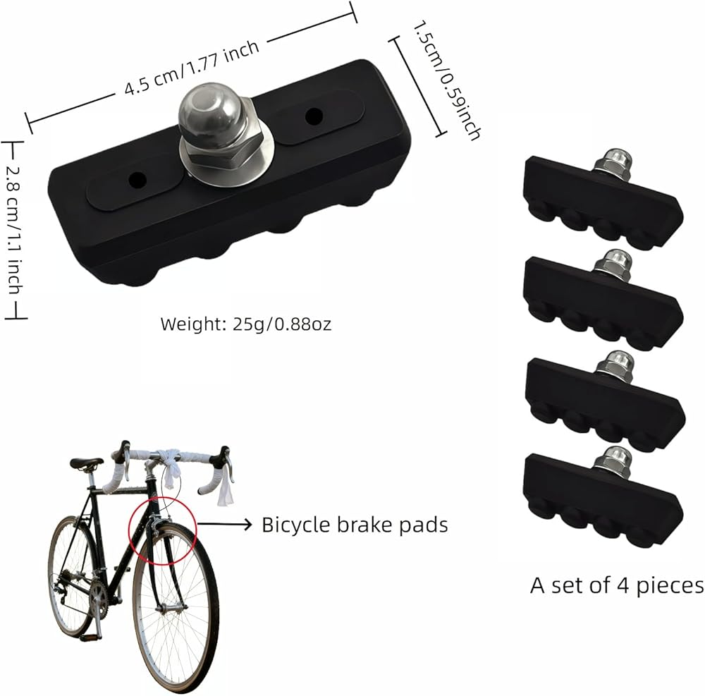 【Universal Fit & Complete2-Pair Set】 Contains 2 pairs (4 individual pads) specifically designed for road bikes with C-type caliper brakes. These 1.77IN brake pads fit most standard road bicycle systems and work effectively with both aluminum and steel rims - perfect for commuting, leisure riding, or long-distance cycling.
