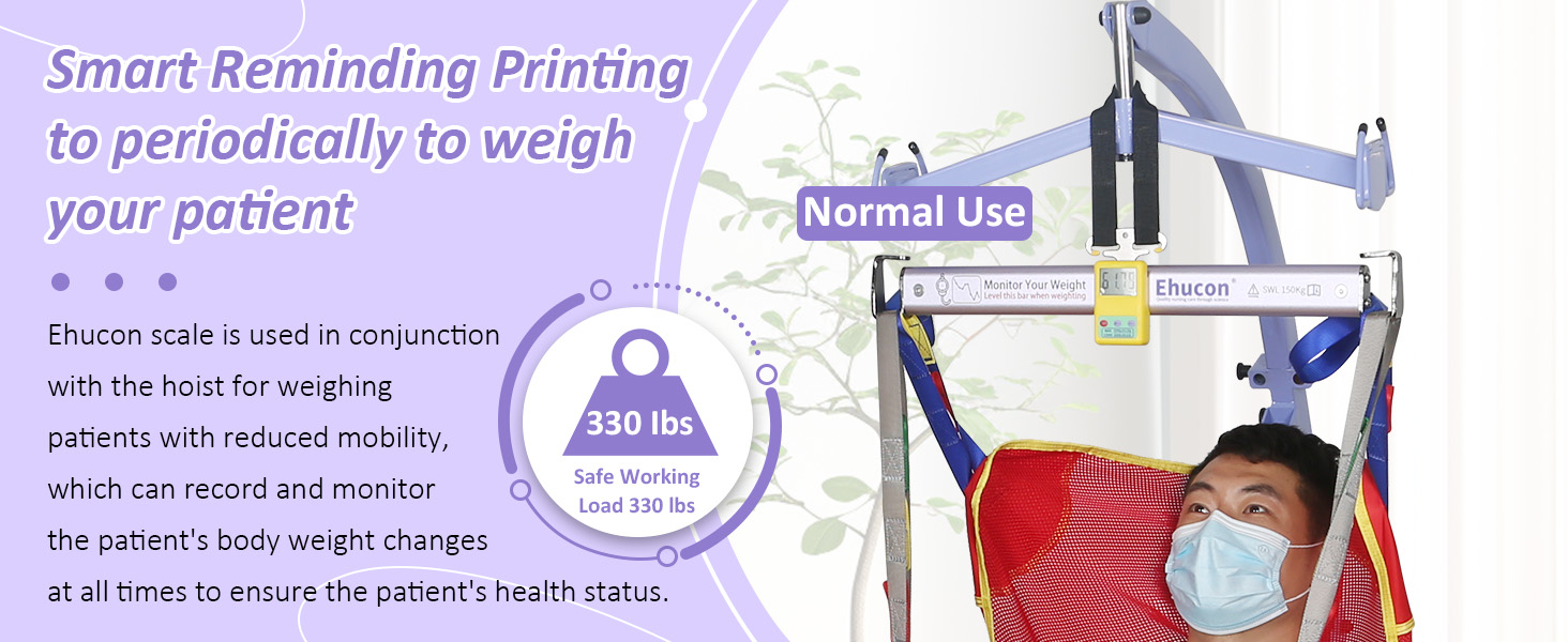 Smart Reminding Printing to Periodically to Weigh Your Patient:Ehucon patient lift scale is used in conjunction with the hoist for weighing patients with reduced mobility, which can record and monitor the patient's body weight changes at all times to ensure the patient's health status.