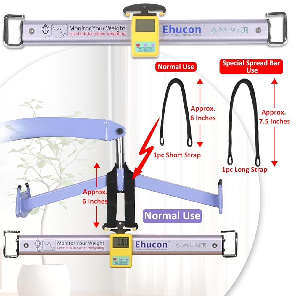 Upgrade Design Solves The Problem of Excessive Connection Length:Weight scale built into the load receptor bar to largely reduce the distance spacing (7.75” or 6”) between spread bar and the device which can provide a longer lifting distance to adapt for clients with a taller body.