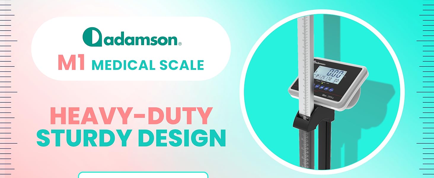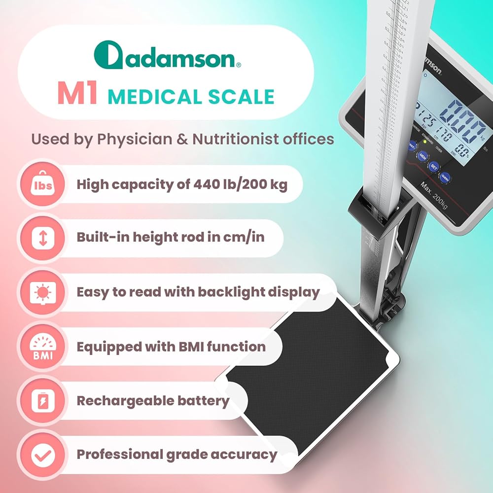 Adamson M1 Medical Digital Scale – 440 lb / 200 kg Capacity – BMI & Weight Measurement with Height – Professional for Home, Hospital, & Physicians – Heavy Duty