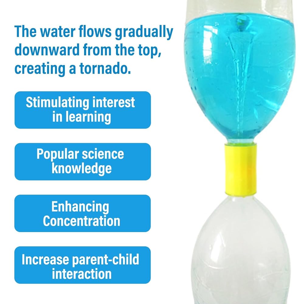 ✔️ - Adding pigments or detergent to the water in the bottle can create small tornadoes in different colours and bubbles. This will make the experiment more interesting.