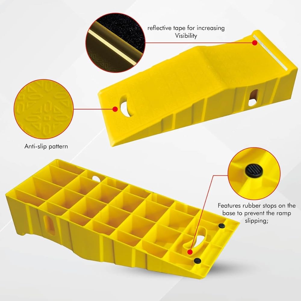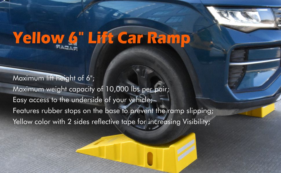 2Pack 6″ Yellow Lift Car Ramps - 10,000 lbs Capacity per Pair, Non-Slip Surface with Reflectors,Vehicle Service Ramps for Maintenance, Oil Changes, and Repairs