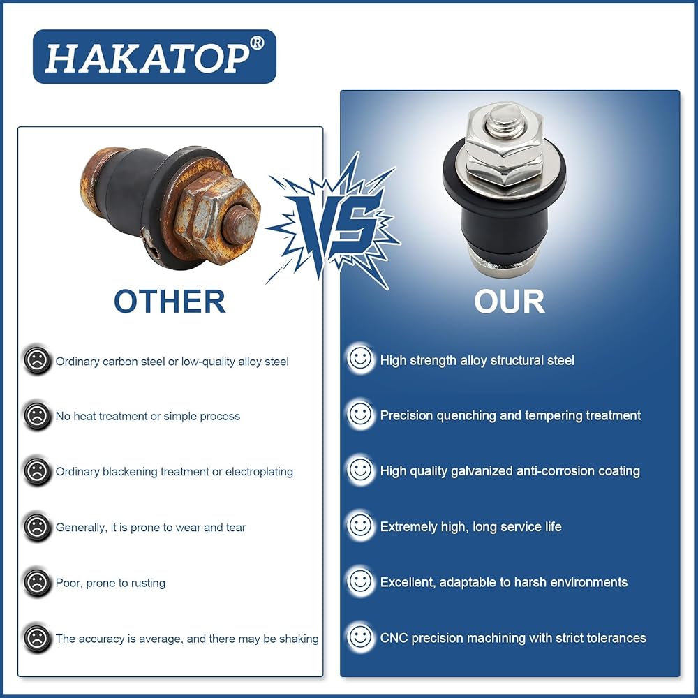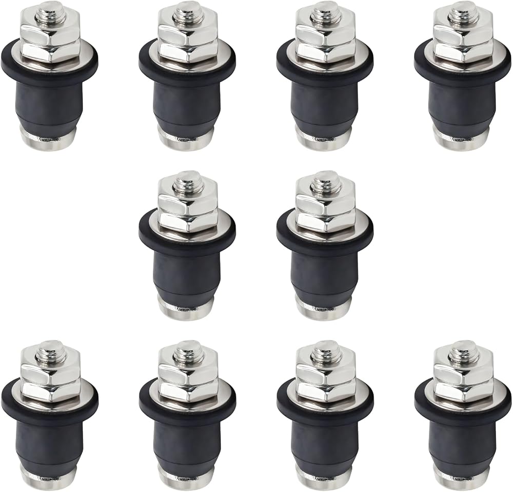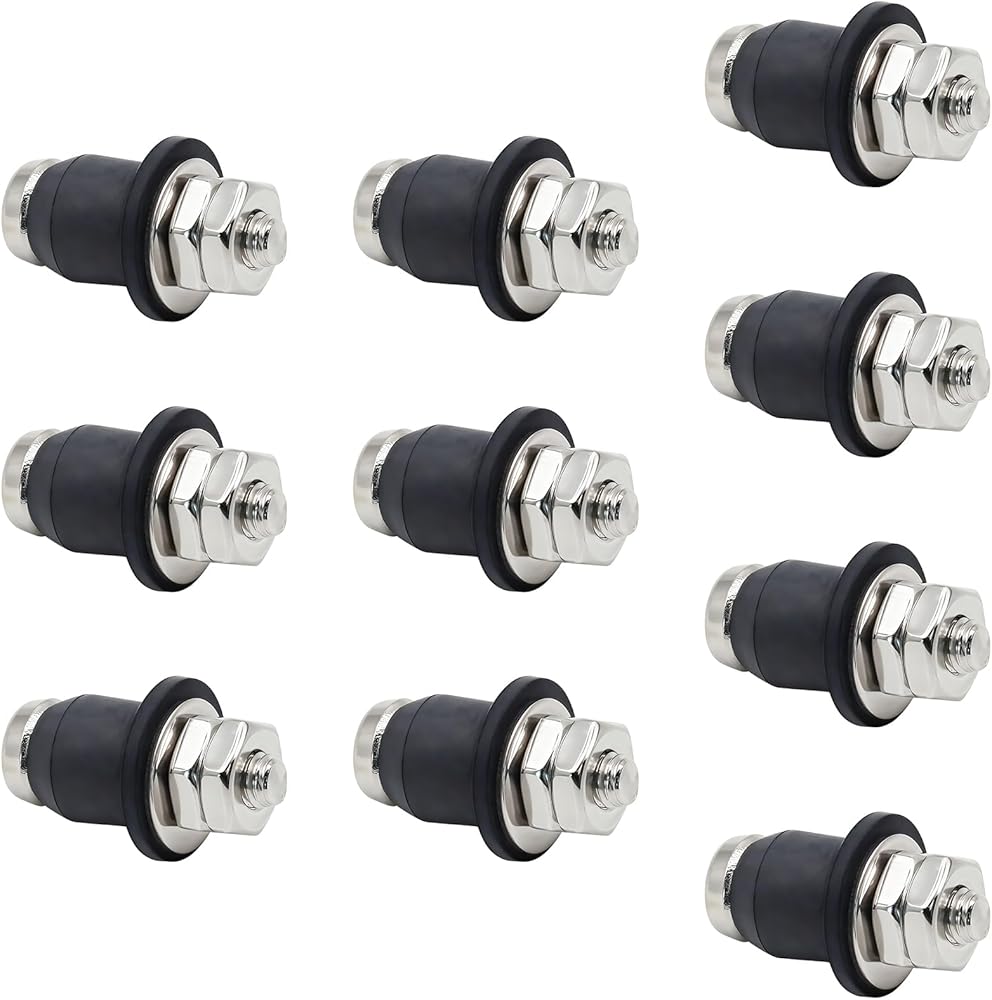 Each sensor consists of 4 parts: vulcanized grommet (1), sensor post (1), washer (1), and 3/8" nut (2).