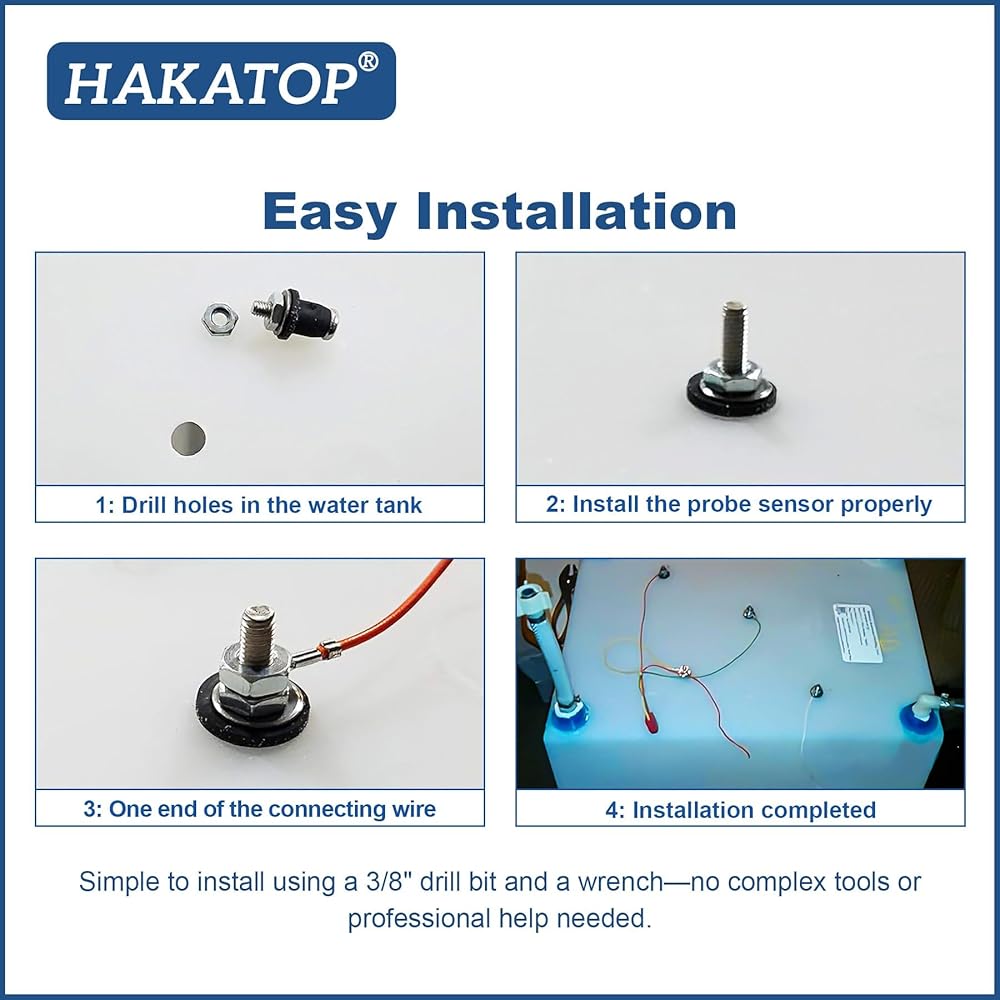 Simple to install using a 3/8" drill bit and a wrench. Drill the hole, insert the sensor from inside the tank, and tighten the nut to activate the pressure seal—no complex tools or professional help needed.