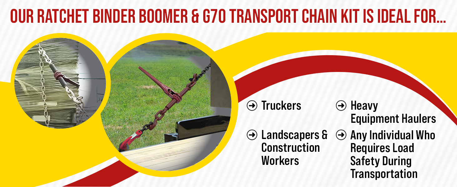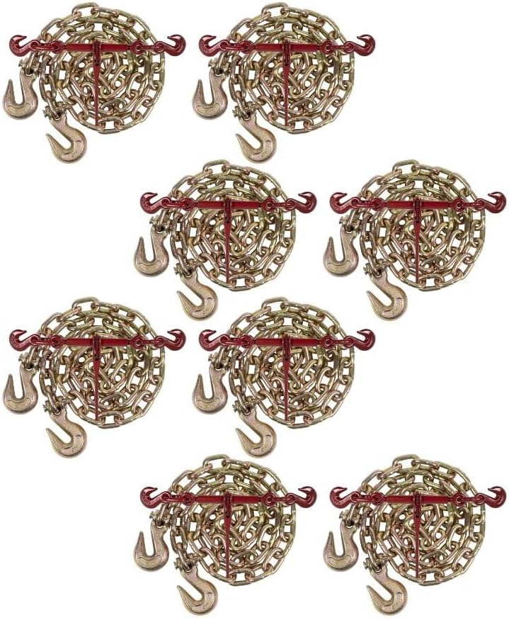 - (4) 3/8" x 20' Grade 70 transport Chain - w/ grab hooks on each end. Working Load Limit: 6,600 lbs. Capacity: 26,400 lbs.