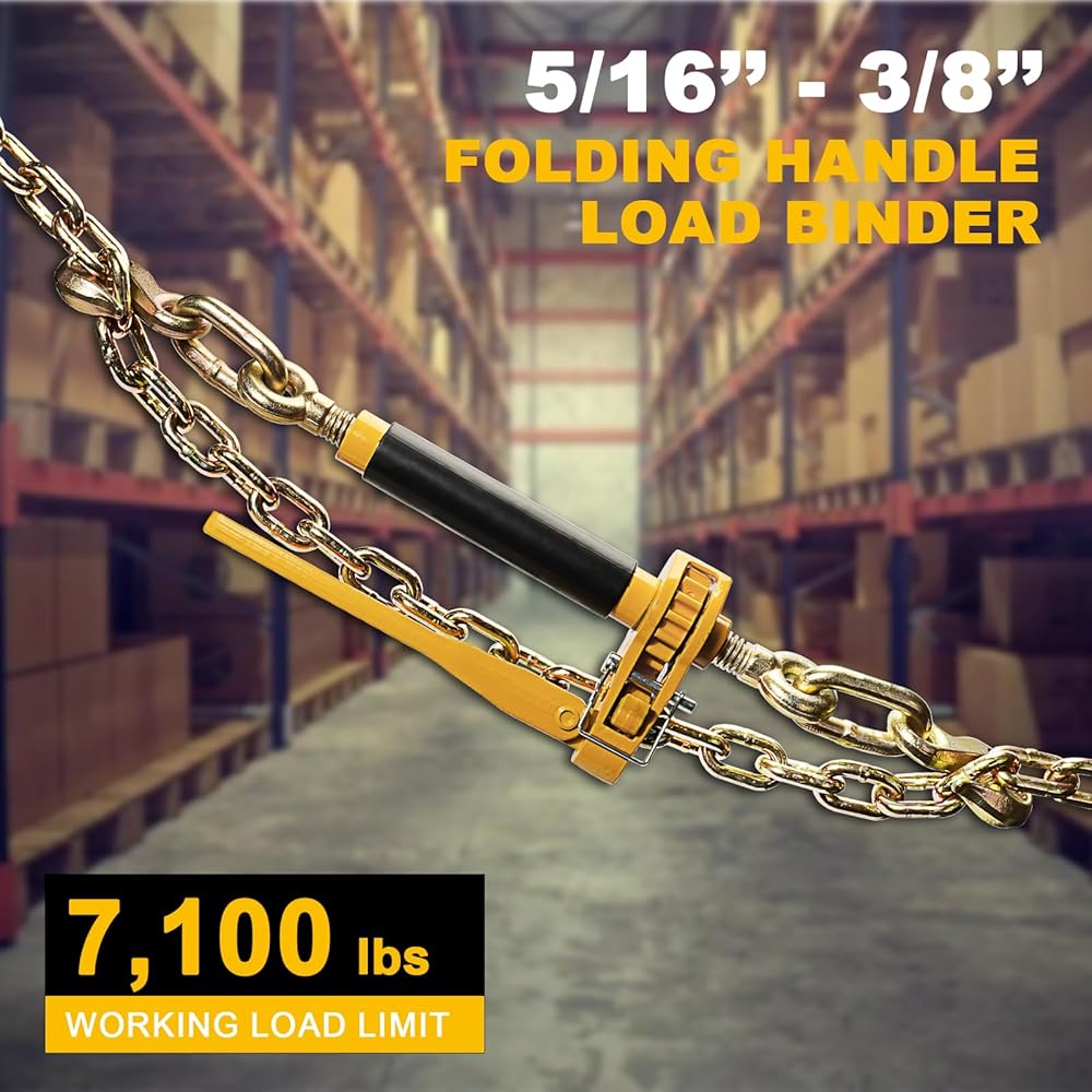 WIDE APPLICATION: This Chain Binders are Designed for Use With 5/16 Inch Grade 70 Transport Chain and Can Also Accommodate 3/8 Inch Grade 43 Chain, This drop forged ratchet type load binders is perfect for securing heavy-duty cargo in your trailer truck, trailer, and flatbed with transport chain,and towing cargos for most industrial applicatio