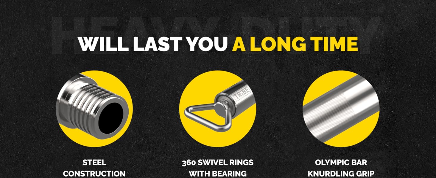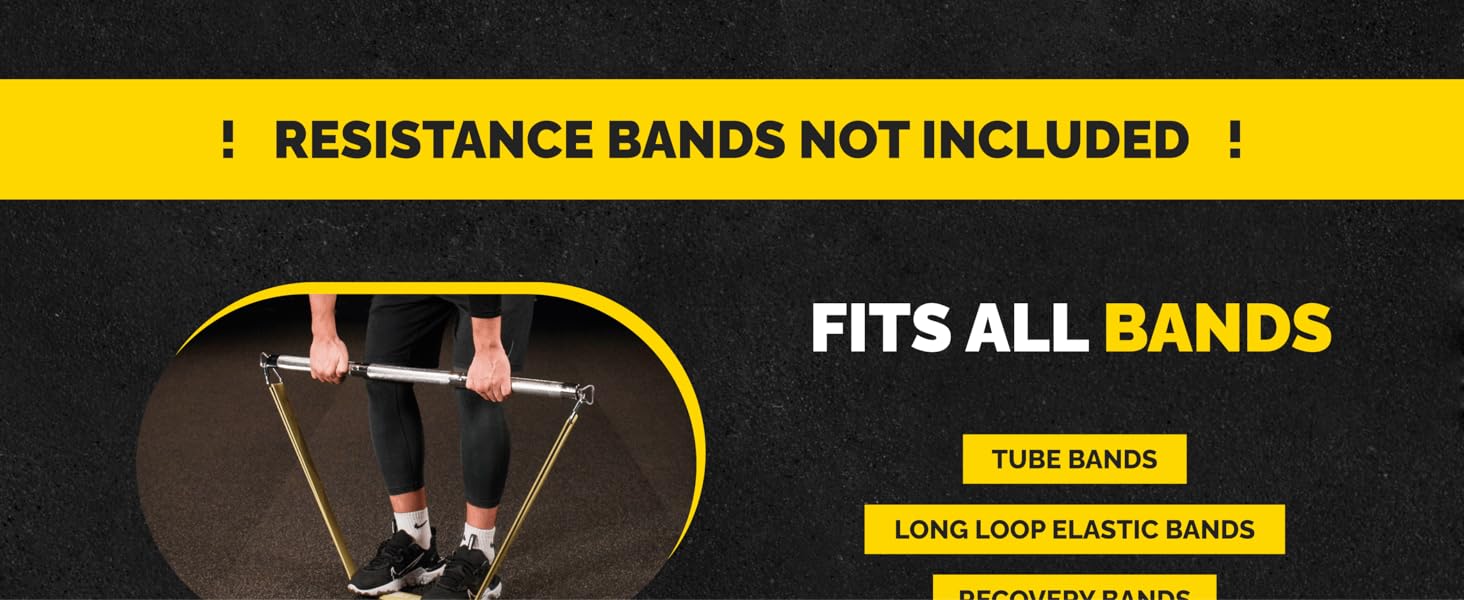 Tribe Lifting Resistance Band Bar - Heavy Duty Steel Bar for Resistance Bands - Resistance Bands Bar 3-Section Adjustable 39 to 27 Inch - Ball Bearing Swivel - Portable Home Gym Workout