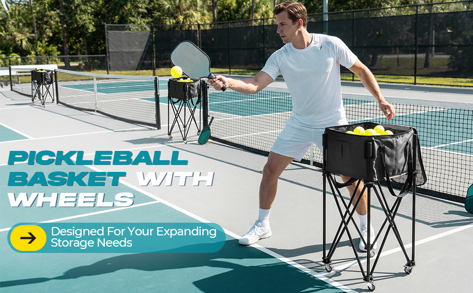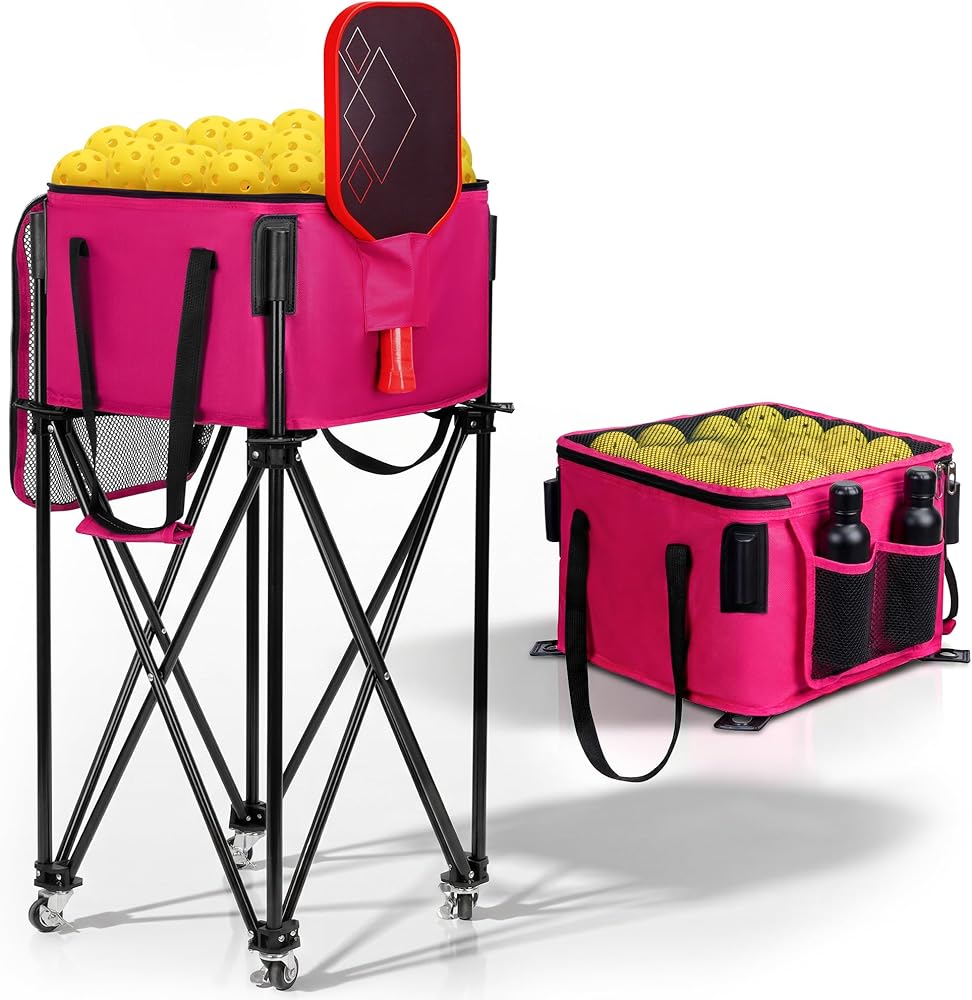🔩 HEAVY-DUTY X-FRAME PICKLEBALL CART: Built with a stainless steel X-shaped frame, this pickleball cart delivers exceptional durability. Features 360° lockable swivel wheels—this pickleball basket with wheels rolls smoothly and stays securely in place when parked. The portable design lets this pickleball ball caddy move effortlessly around the court, making it a top-tier court accessory.