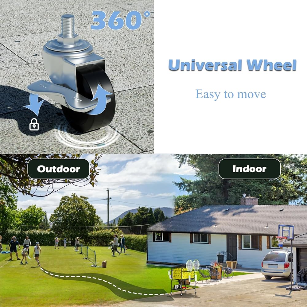 Heavy Duty Wheels - 4 universal wheels 2 of them with brakes, with the appropriate height of the handle, can be better pushed on the tennis court, easy to move from indoor to outdoor