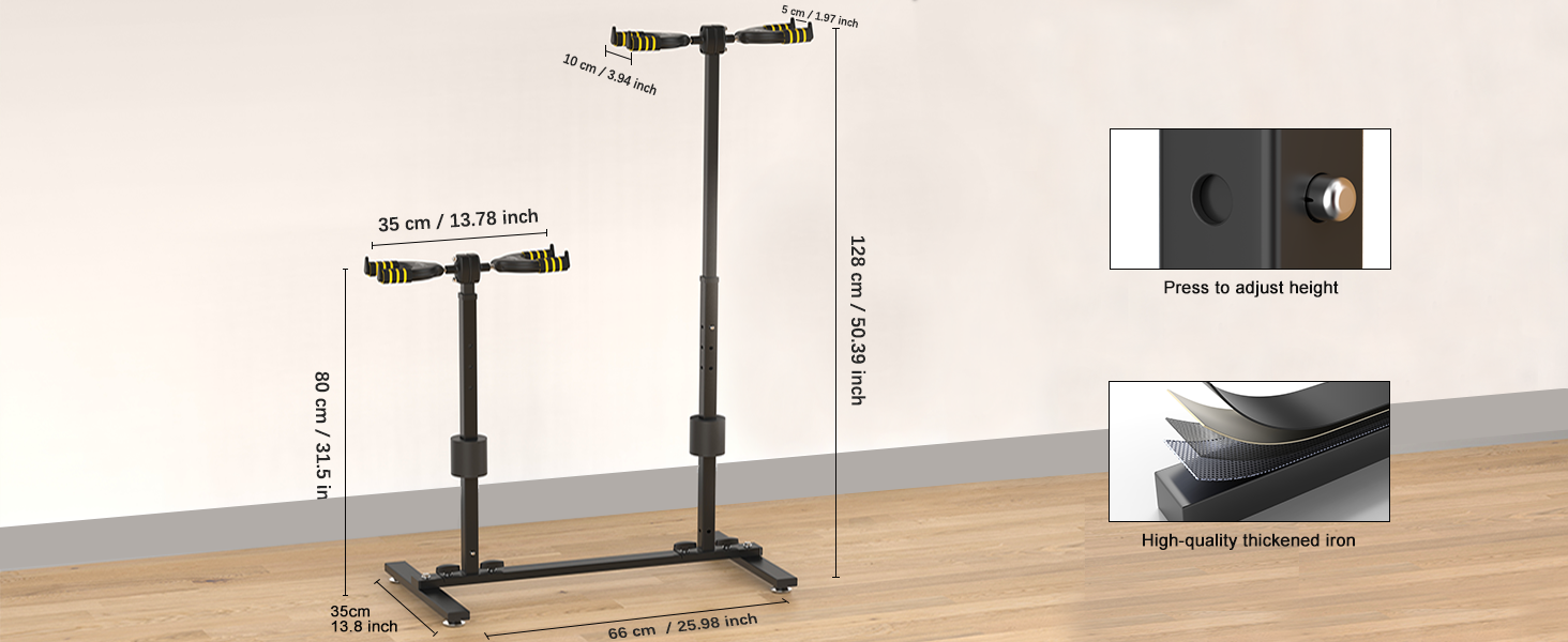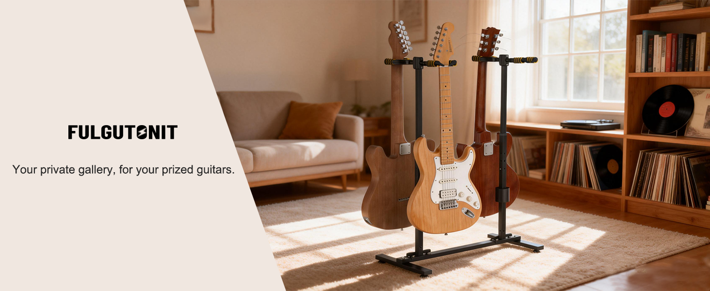 [ Built for Strength & Stability ] The Fulgutonit guitar rack for multiple guitars is crafted from 0.055inch (1.4mm)powder-coated steel for superior rust resistance and long-lasting durability. Its robust H-frame design ensures optimal stability, supporting up to 66 lbs (30 kg) of instruments.4 adjustable feet provide reliable leveling on any surface